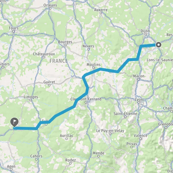 Prendre à droite et rejoindre A89 E70. Continuer sur 160 kilomètres