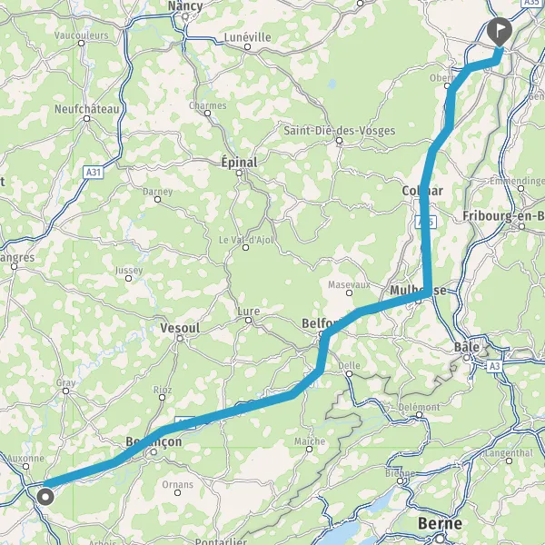 Prendre à droite et rejoindre A35. Continuer sur 17 kilomètres