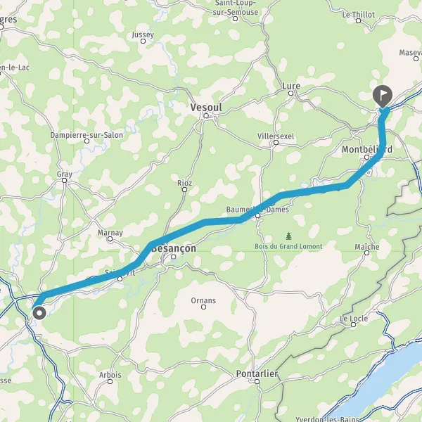 Prendre à droite et rejoindre A36 E60. Continuer sur 12 kilomètres