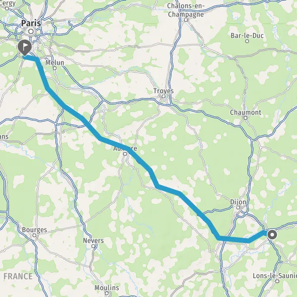 Prendre à droite et rejoindre A6. Continuer sur 277 kilomètres
