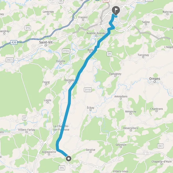 Tourner à droite sur D141 (Route de Levier) et continuer sur 1 kilomètre