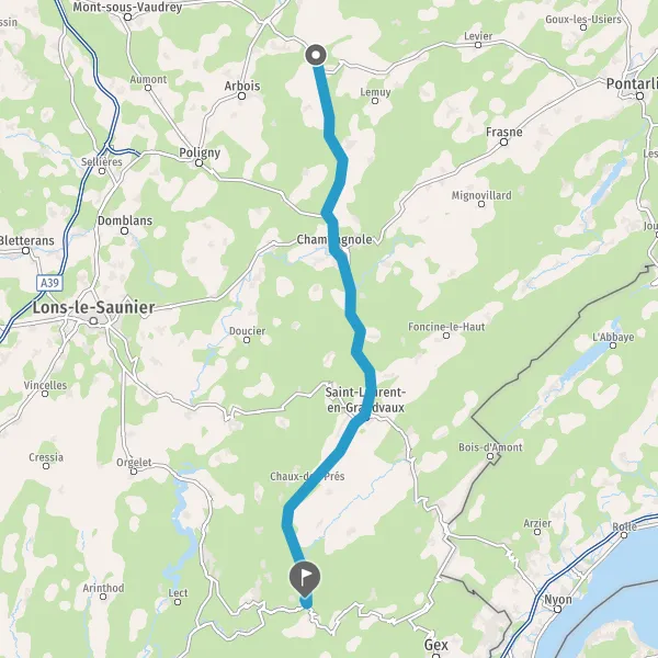 Tourner à droite sur D467 (Route de Champagnole) et continuer sur 7,9 kilomètres