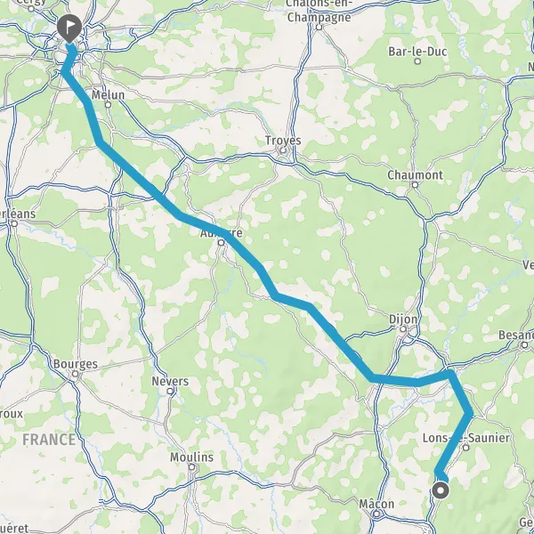 Prendre à droite et rejoindre A6. Continuer sur 293 kilomètres