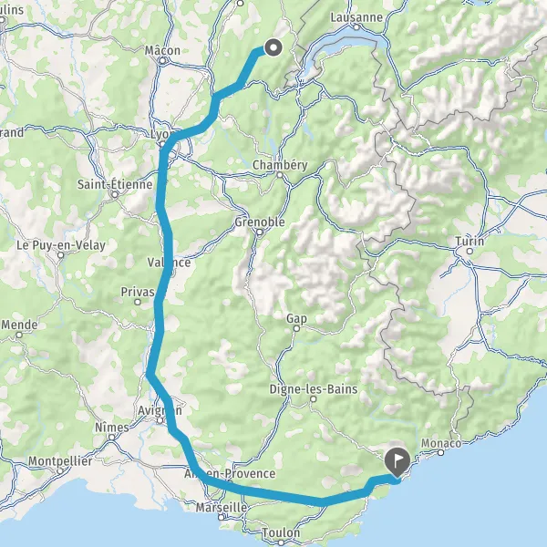 Prendre à gauche et rejoindre A7 E15. Continuer sur 150 kilomètres
