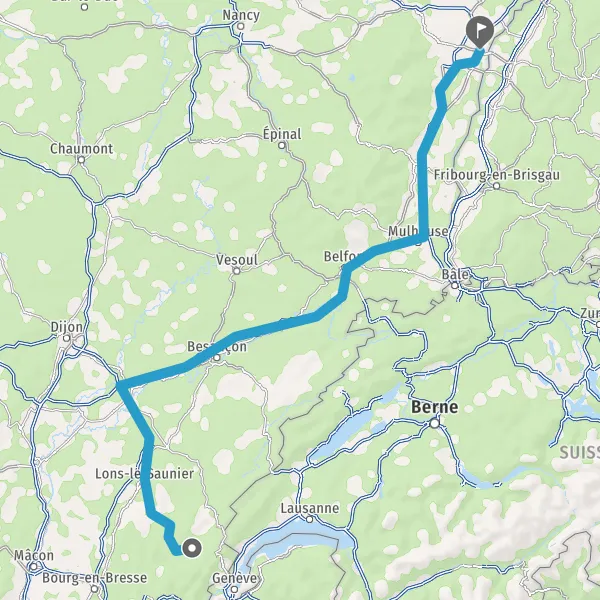 Prendre à droite et rejoindre A36 E60. Continuer sur 185 kilomètres