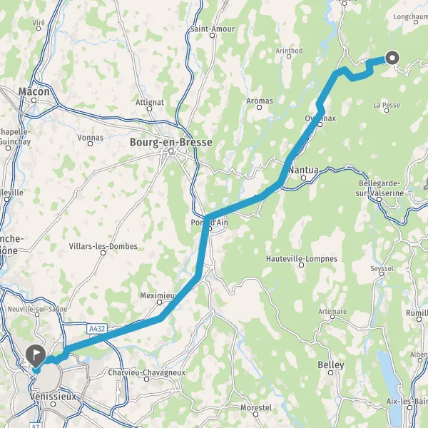 Au rond-point, prendre la 2ème sortie sur D436 (Route de Lyon) et continuer sur 180 mètres