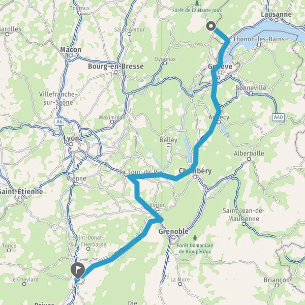 Entrer en Suisse et prendre Route de France sur 7,7 kilomètres