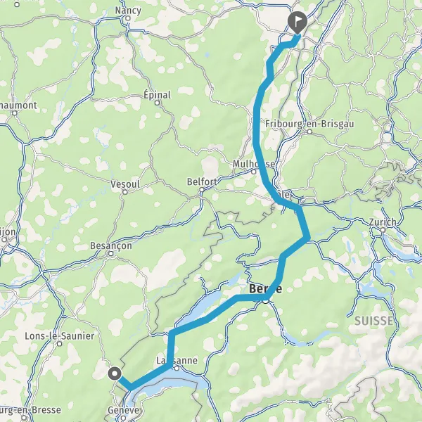 Entrer en Suisse et prendre Route de France sur 7,7 kilomètres