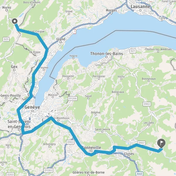 Tourner à gauche sur D902 (Route de Cluses) et continuer sur 1,5 kilomètre