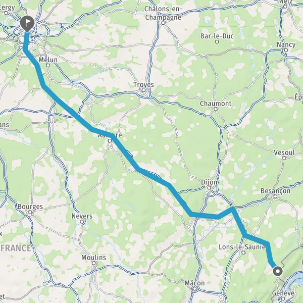 Prendre à droite et rejoindre A6. Continuer sur 293 kilomètres