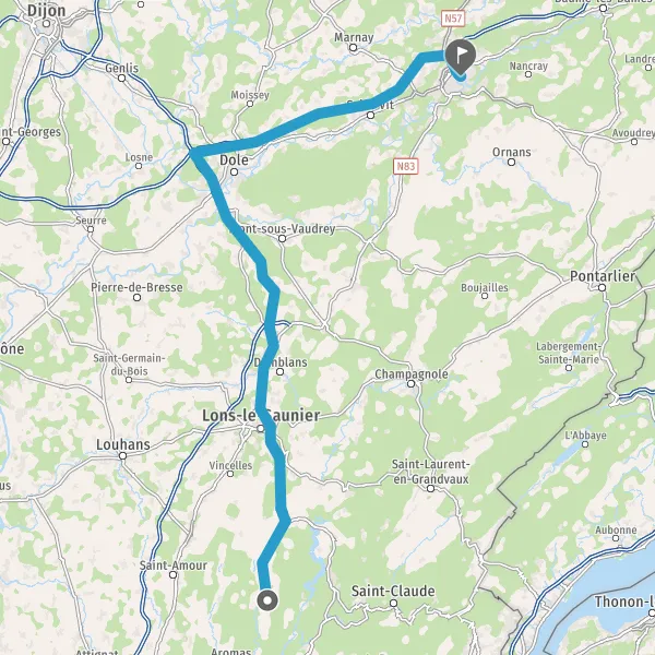 Au rond-point, prendre la 3ème sortie sur N57 (Rue de Vesoul) et continuer sur 2,2 kilomètres