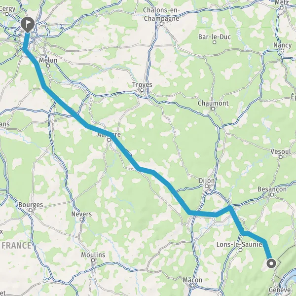 Prendre à droite et rejoindre A6. Continuer sur 293 kilomètres