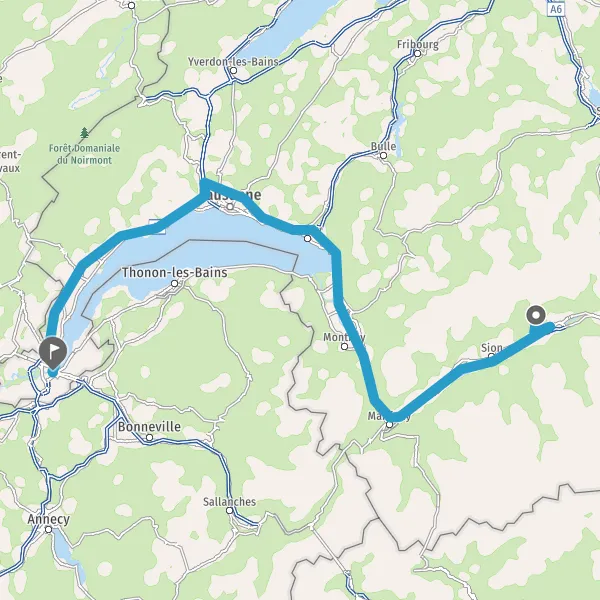 Continuer 1 (Rue de Lausanne) sur 2 kilomètres