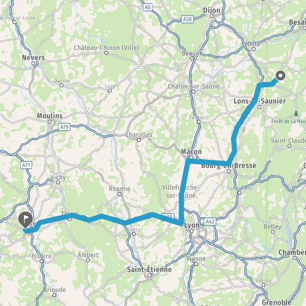Continuer et rejoindre A89 E70. Continuer sur 77 kilomètres