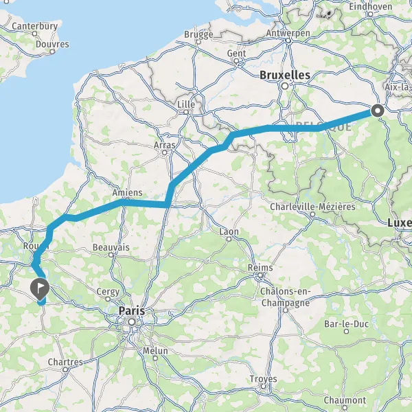 Prendre à droite et rejoindre A154. Continuer sur 27 kilomètres