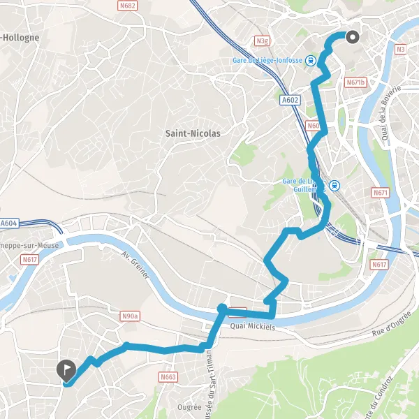 Prendre à droite et rejoindre N63 E46 (Rampe du Pont d'Ougrée). Continuer sur 400 mètres