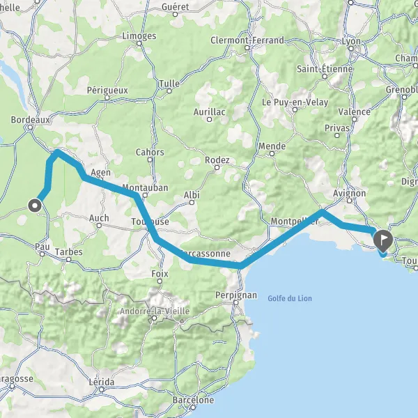 Prendre à droite et rejoindre A62 E72. Continuer sur 182 kilomètres