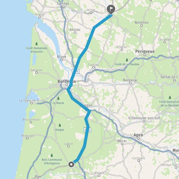 Prendre à droite et rejoindre A65 E7. Continuer sur 71 kilomètres