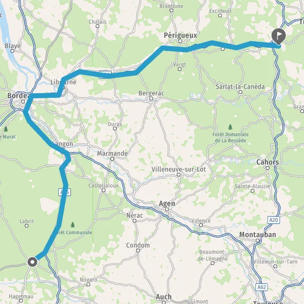 Prendre à droite et rejoindre A62. Continuer sur 42 kilomètres