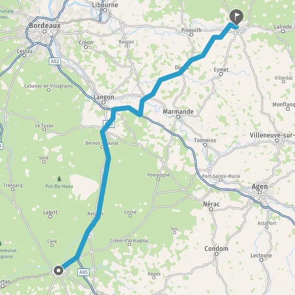 Prendre à droite et rejoindre A65 E7. Continuer sur 71 kilomètres