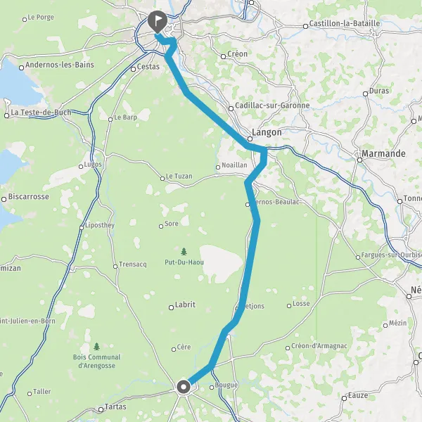 Prendre à droite et rejoindre A62. Continuer sur 42 kilomètres