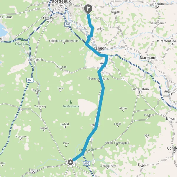 Prendre à droite et rejoindre A65 E7. Continuer sur 71 kilomètres
