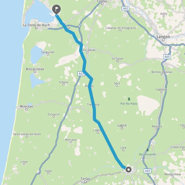 Prendre à droite et rejoindre A63 E5 E70. Continuer sur 15 kilomètres