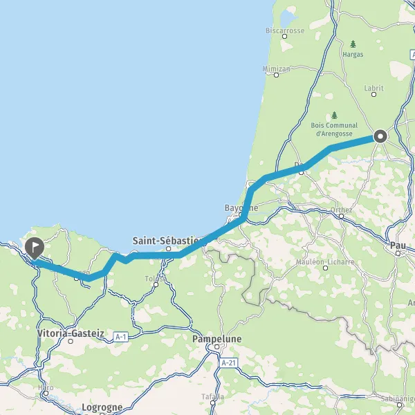 Prendre à droite et rejoindre A63 E5 E70. Continuer sur 66 kilomètres