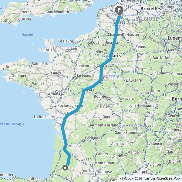 Prendre à droite et rejoindre A65 E7. Continuer sur 71 kilomètres