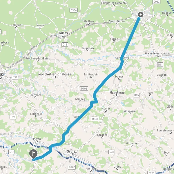 Tourner légèrement à gauche sur D21 (Route d'Amou) et continuer sur 9,6 kilomètres