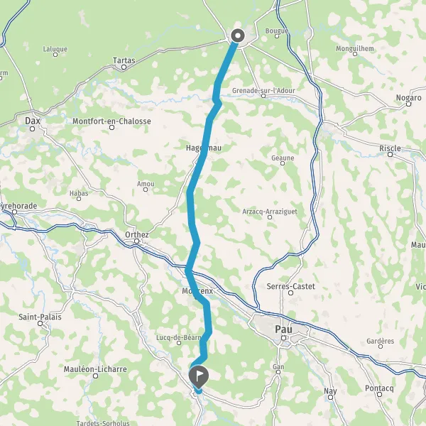 Tourner légèrement à droite sur D2 (Route de Pau) et continuer sur 2 kilomètres