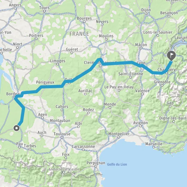 Prendre à droite et rejoindre A65 E7. Continuer sur 71 kilomètres