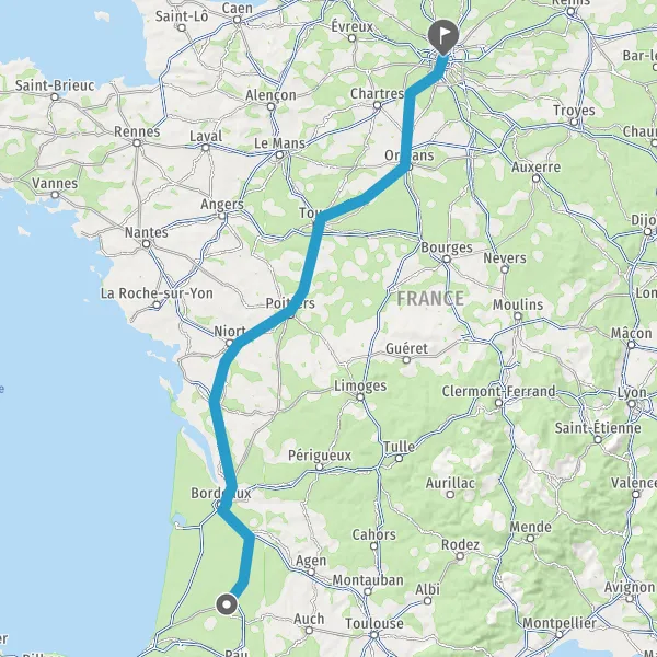 Prendre à droite et rejoindre A65 E7. Continuer sur 71 kilomètres