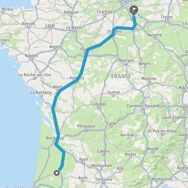 Prendre à droite et rejoindre A65 E7. Continuer sur 71 kilomètres