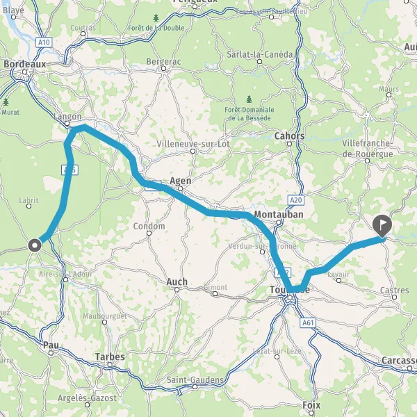 Prendre à droite et rejoindre A62 E72. Continuer sur 182 kilomètres
