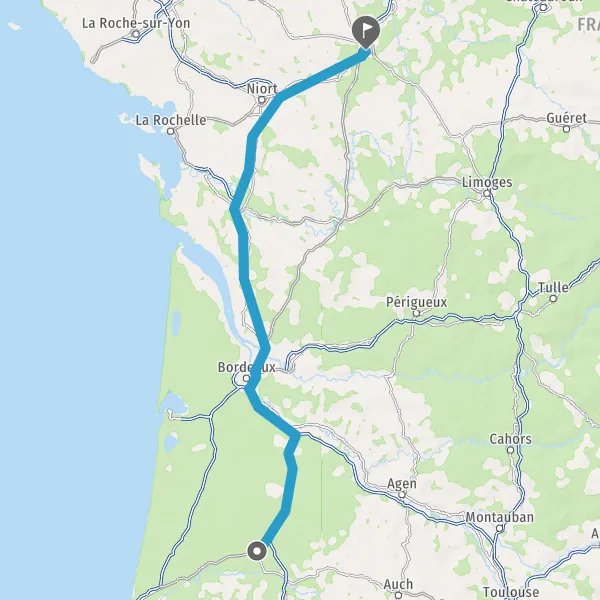 Prendre à droite et rejoindre A65 E7. Continuer sur 71 kilomètres