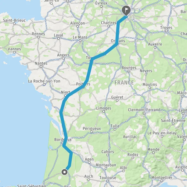 Prendre à droite et rejoindre A65 E7. Continuer sur 71 kilomètres
