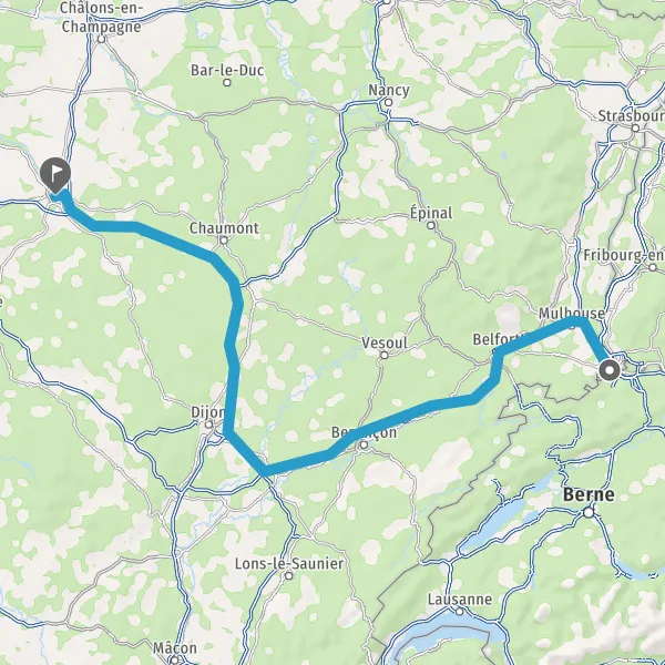 Prendre à gauche et rejoindre A36 E54 E60. Continuer sur 186 kilomètres