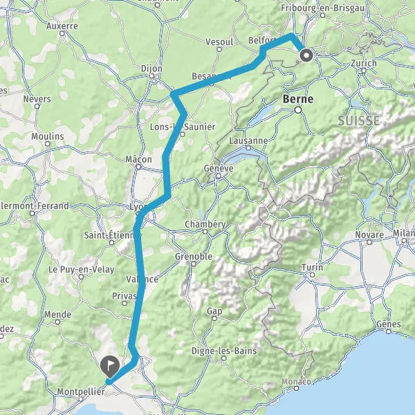 Prendre à gauche et rejoindre A36 E54 E60. Continuer sur 186 kilomètres