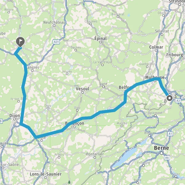 Prendre à gauche et rejoindre A36 E54 E60. Continuer sur 50 kilomètres