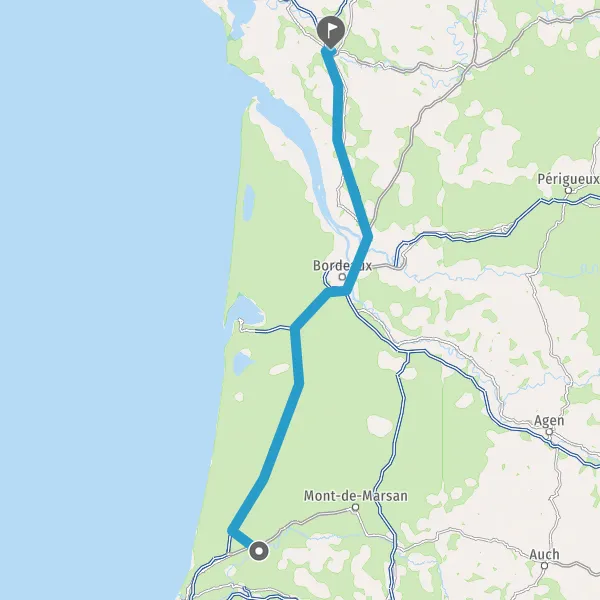 Prendre à droite et rejoindre A63 E5 E70. Continuer sur 130 kilomètres