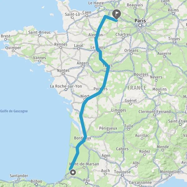 Continuer E5 (L'Aquitaine) sur 328 kilomètres