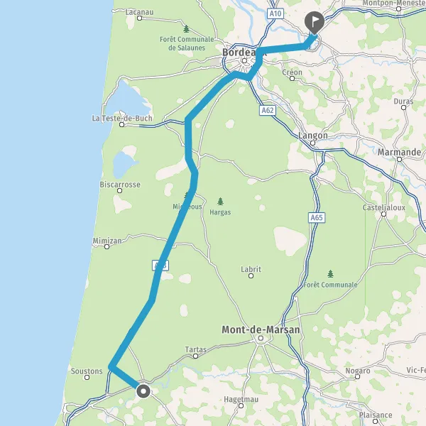 Prendre à droite et rejoindre A63 E5 E70. Continuer sur 117 kilomètres