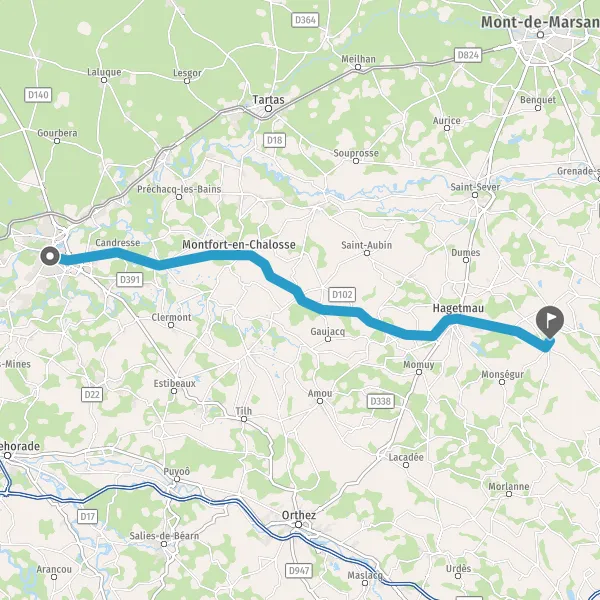 Tourner légèrement à droite sur D2 (Avenue du Tursan) et continuer sur 8,6 kilomètres