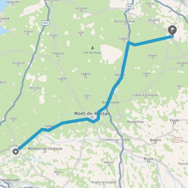 Prendre à droite et rejoindre A65 E7. Continuer sur 41 kilomètres