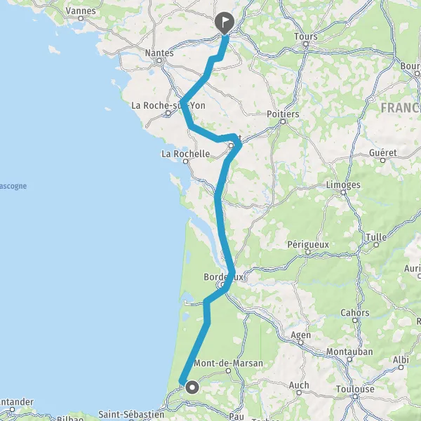 Prendre à droite et rejoindre A63 E5 E70. Continuer sur 130 kilomètres