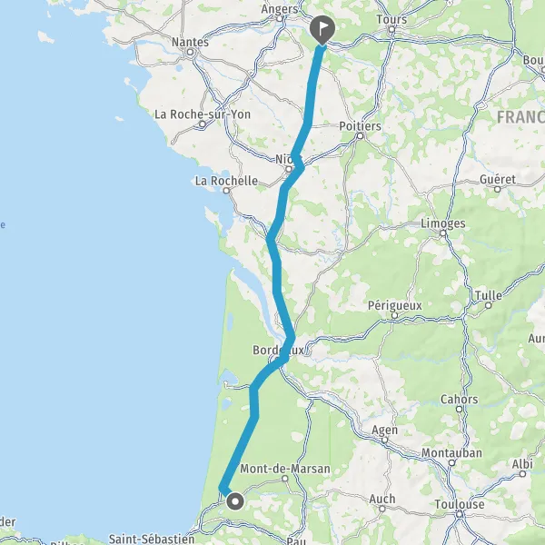 Prendre à droite et rejoindre A63 E5 E70. Continuer sur 130 kilomètres