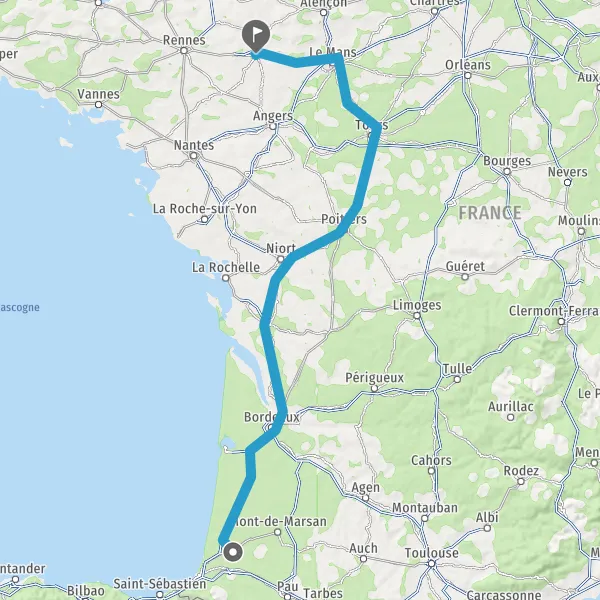 Continuer E5 (L'Aquitaine) sur 328 kilomètres