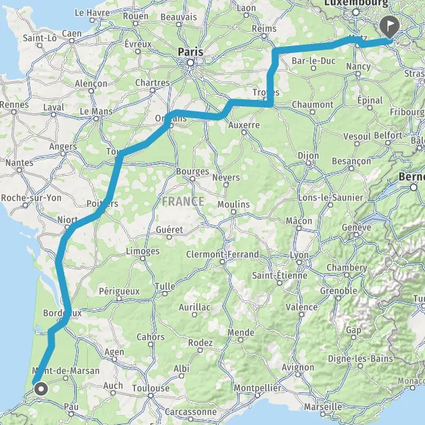 Prendre à droite et rejoindre A65 E7. Continuer sur 71 kilomètres