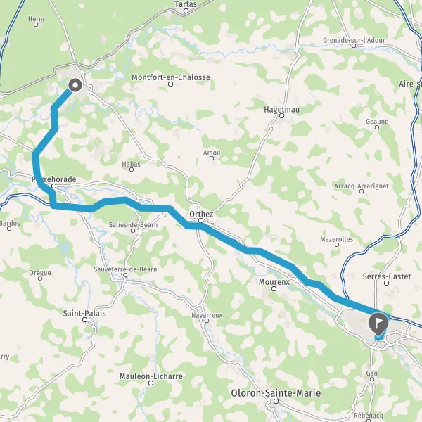 Au rond-point, prendre la 2ème sortie sur D947 (Route d'Orthez) et continuer sur 3,6 kilomètres